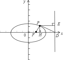 分析:根据题意过点P作PH垂直于x轴,并且交x轴与点H,过点P作PE垂直于右准线,并且交右准线与点E,由题意可得:∠DPE=∠PDF.由椭圆的第二定义可得: