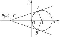 如下图,该圆以点(1,0)为圆心,1为半径,数形结合可知两切线斜率为±
