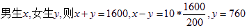 某校对全校男女学生共1600名进行健康调查,选用分层抽样法抽取一个容量为200的样本.已知女生比男生少抽了10人,则该校的女生人数应是