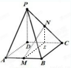【答案】分析:(1)取CD中点E,连接ME,NE,结合已知条件,由三角形中位线定理可得ME∥AD,NE∥PD,由面面平行的判定定理易判断出平面MNE∥平面PAD,再由面面平行的判定定理得到MN∥平面PAD;