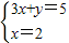 可得直线y=3x+y与直线x=2的交点使目标函数z=3x+y取得最小值5,