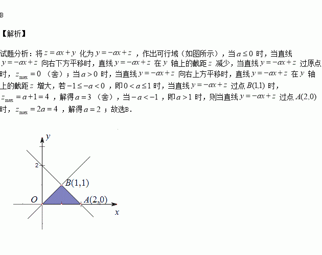 已知满足约束条件,若的最大值为4,则( )