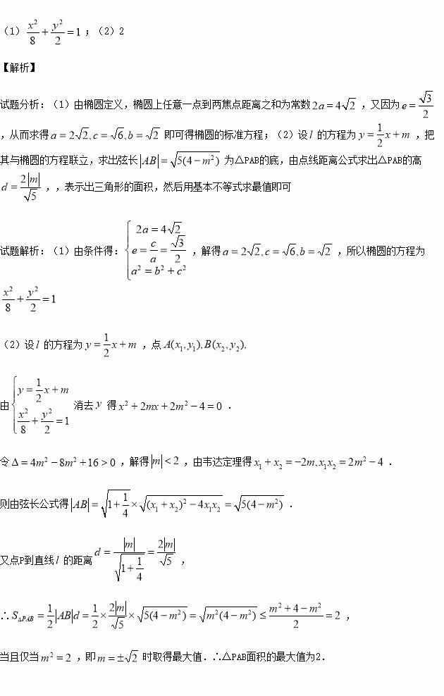 (2)若直线的斜率为,直线与椭圆C交于两点.点为椭圆上一点,求的面积的最大值.
