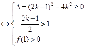 【解析】本试题主要考查了一元二次方程中方程根的分布的运用结合图象法进行分析,求解。