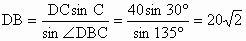 依题意作图,则∠C=30°,∠FBD=45°,CD=40,由此得∠DBC=180°-45°=135°,∠BDC=15° |