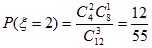 在一个袋子中共装有12个大小相同的各种颜色的小球,从袋中任意摸出2个小球,其中至少得到1个白球的概率是