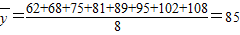 | 加工时间y(min) | 62 | 68 | 75 | 81 | 89 | 95 | 102 | 108 |