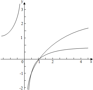 解答 解:在同一坐标系中画出函数y1=log2x与y2=1-$\frac{1}{x}$的图象;![]()