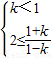 综上可知:实数k的取值范围是