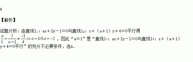 设a∈R,则“a=1”是“直线l1:ax+2y-1=0与直线l2:x+(a+1)y+4=0平行”的( )