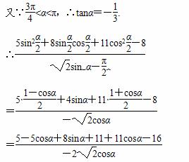 已知π<α<π,tanα+=-.