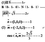 如图,直三棱柱ABC—A1B1C1,底面△ABC中,CA=CB=1,∠BCA=90°,棱AA1=2,M、N分别是A1B1,A1A的中点,(用空间向量法求解,其他方法不得分 ) (1)求