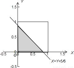【答案】分析:本题考查的知识点是几何概型的意义,关键是要找出0,1)中随机地取出两个数所对应的平面区域的面积,及两数之和小于