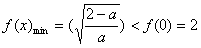 此时f(x)min= f(0)=2,符合题意;