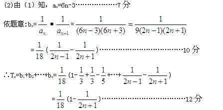 ∴an+1=sn+1-sn=3(n+1)2-3n2=6n+3………………………………6分![]()