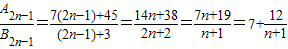 已知两个等差数列{an}和{bn}的前n项和分别为An和Bn,且A.2