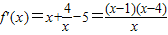 由f'(x)>0得,0<x<1或x>4,由f'(x)<0得,1<x<4.当x变化时,f'(x)、f(x)变化情况如下表: