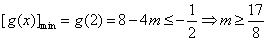 ②当m∈[1,2]时,[g(x)]min=4-m2≥0,与(*)矛盾;