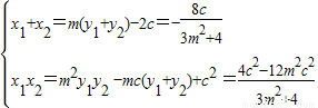 ,消x得,(4+3m2)y2-6mxy-9c2=0,再由韦达定理进行求解.