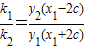 当点C在x轴下方时,同理可求得k1:k2=3,