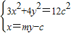 ,消x得,(4+3m2)y2-6mxy-9c2=0,