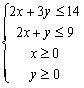使目标函数为S=3x+2y取最大值的(x,y)是直线2x+3y=14与2x+y=9的交点(3.25,2.5),
