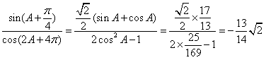 ∴A为锐角,且sinA=