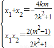 ,可得(1+2k2)x2+4kmx+2m2-2=0