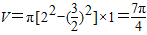 【答案】分析:由三视图可知:该几何体为一空心圆柱,其中内层圆柱的底面直径为3,外层底面的直径为4;圆柱的高为1.据此可计算出体积.