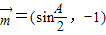 点评:本题给出向量含有三角函数式的坐标,求角A的大小并求b2+c2的取值范围,着重考查了向量数量积的坐标公式、余弦定理和基本不等式求最值等知识,属于中档题.