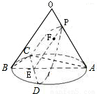 【答案】分析:设抛物线与圆锥底面交点为C、D,连结CD交AB于点E,连结PE,则PE∥OB且抛物线焦点F在PE上,连结BC、AC.利用平行线的性质证出△PAE是边长为3的正三角形,在底面圆Rt△ABC中利用射影定理算出CE=