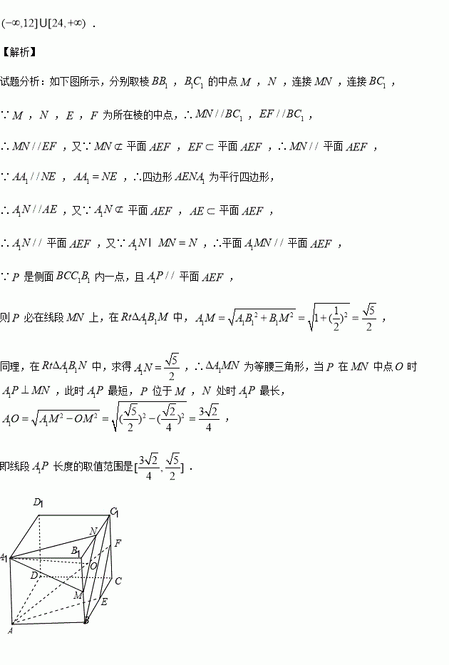 如图,在棱长为1的正方体中,点,分别是棱,的中点,是侧面内一点,若平面,则线段长度的取值范围是__________.