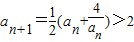 (若an=2,则an+1=2,从而可得{an}为常数列与a1=4矛盾);(4分)