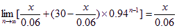 对于n>1,有bn+1=bn×0.94+x=bn–1×0.942+(1+0.94)x,…
