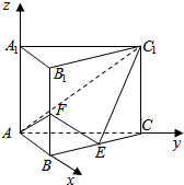 分析 (1)如图所示,建立空间直角坐标系.A(0,0,0),B(2,0,0),B1(2,0,2),F(2,0,1),C(0,2,0),E(1,1,0),C1(0,2,2).只要证明$\overrightarrow{AF}•\overrightarrow{{C}_{1}E}$=0即可.