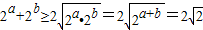 【答案】分析:因为2a与2b均大于0,所以直接运用基本不等式求最小值.