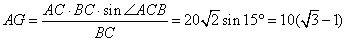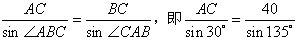 | 解:设B为塔正东方向一点,AE为塔, 沿南偏西60°行走40m后到达C处, 即BC=40,且∠CAB=135°,∠ABC=30°, 如图,在△ABC中, ∴AC= 由点A向BC作垂线AG,此时仰角∠AGE最大,等于30°, 在△ABC中, ∴ ∴在△AEG中, 塔高AE=AG·tan30°= ∴塔高为 |