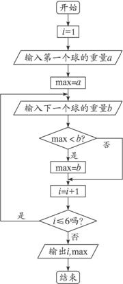在标有1,2,3,4,5,6六个号码的小球中,有一个是最重的,试画出找出此球的算法的程序框图.