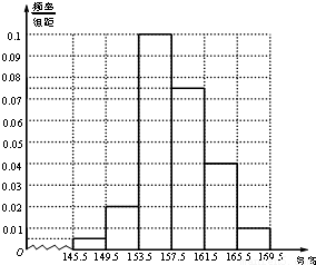 为了了解初三学生女生身高情况,某中学对初三女生身高进行了一次测量,所得数据整理后列出了频率分布表如下:
