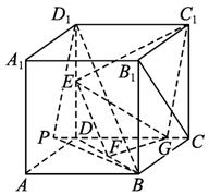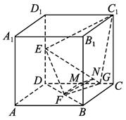 已知在正方体ABCD—A1B1C1D1中,E、F分别是D1D、BD的中点,G在棱CD上,且CG=![]()