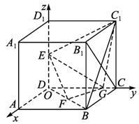 解法二:建立下图所示空间直角坐标系O—xyz,设正方体的棱长为4,则E(0,0,2),F(2,2,0),C(0,4,0),B(4,4,0),C1(0,4,4),B1(4,4,4),G(0,3,0).