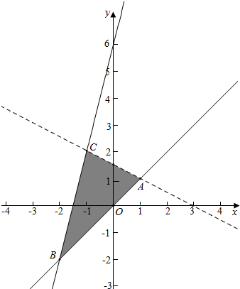解答 解:变量x,y满足约束条件:$\left\{\begin{array}{l}{x-y≤0}\\{x+2y≤3}\\{4x-y≥-6}\end{array}\right.$对应的平面区域如图: