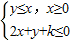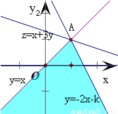 得到位于直线y=x和y=-2x-k相交得到下方平面区域,即如图的阴影部分