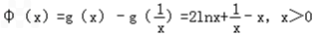 x∈(1,+∞)时,φ(x)<0,即g(x)<