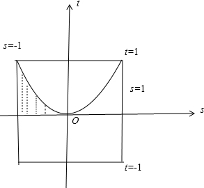 分析:先将二次方程x2+2sx+t=0的两根都是正数的s,t必须满足的条件列出来,再在坐标系sot中画出区域,最后求出面积比即可.