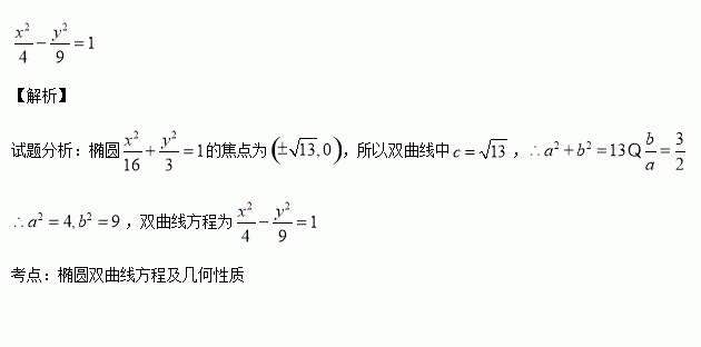 已知双曲线与椭圆有相同的焦点,且其中一条渐近线方程为,则该双曲线的标准方程为________________.
