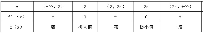 (2)令f′(x)=0,得x1=2,x2=2a,因为a>1,所以x1<x2,