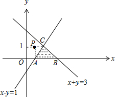 解答 解:由约束条件$\left\{\begin{array}{l}{x+y≤3}\\{x-y≥1}\\{y≥0}\end{array}\right.$作出可行域如图,![]()
