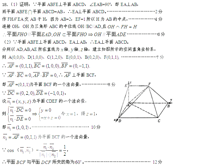 如图,在多面体ABCDEF中,四边形ABCD是矩形,AB∥EF,∠EAB=90º,AB=2,AD=AE=EF=1,平面ABFE⊥平面ABCD。