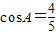 △ABC中,角A,B,C所对的边分别是a,b,c,且cosA=(1)求